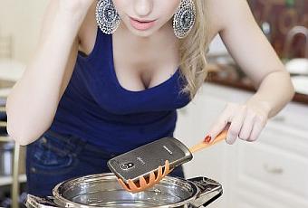 C’est sur le blog d’un photographe russe, Paul Potashnikov, qu’on trouve ces clichés assez spéciaux d’une jeune femme torturant un Galaxy Nexus ! Le pauvre smartphone de Google sert de planche à découper, passe à la poêle, se retrouve dans une assiette et se fait assaisonner, sert à faire la vaisselle, passe à la casserole (pleine d’eau) et enfin au mixer. À la fin elle l’utilise pour passer un appel, enfin s’il fonctionne réellement encore…