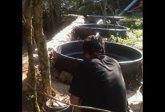 Jusqu’à aujourd’hui, jamais je n’avais fait le mur (contrairement à d’autres, hein frangine!). Le mur de gauche est là pour renforcer le système de phyto-épuration des eaux grises. Des pierres, du sable, de la chaux et de l’huile de coude, c’est quoi? C’est la recette, hey, tapette!