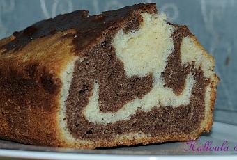 - Faites sortir le beurre 1/4 heure avant.- Mélanger les farines tamisés et la poudre d'amande ainsi que la levure chimique- Fouettez le beurre et le sucre ensemble pour avoir un mélange mousseux et puis ajouter les oeufs- Verser la farine petit à petit pour bien l'incorporer- Finir par les 60ml de lait- Diviser ce mélange en deux, le premier va rester neutre et dans le deuxième ajouter le cacao et les 2 cuillères de lait.- Prenez un moule à cake , beurrer et verser en premier lieu le mélange "blanc" ensuite celui de cacao et ainsi de suite pour avoir un bon marbrure.- Enfourner pendant 40à 45 min à 180°