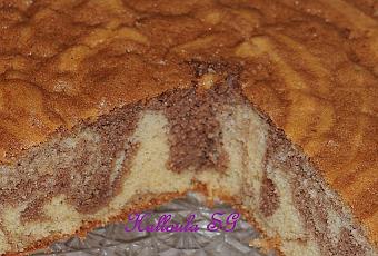 - Allumer le four , 180° - Séparer les blancs des jeunes et faites battre très bien le blanc avec la demi quantité de sucre pour avoir une meringue aérée et volumineuse. ( prendre votre temps pour battre pas moins de 4min )- Ajouter le lait et battre de nouveaux - Battre ensuite les jaunes avec le reste de sucre jusqu'à ce qu'il double de volume.- Ajouter le beurre fondu ou huile de mais comme vous désirez, mélanger de nouveaux.- Faites diviser le mélange en deux : Incorporer le cacao ( ou chocolat en poudre ) dans la première moitié et laisser la deuxième neutre.- Prenez un moule rond de 22cm et faite la technique comme dans ces photos, déposer une cuillère à soupe de mélange cacao dans le centre du moule et ensuite verser une 2ème cuillères du mélange blanc au centre, ainsi de suite, pour avoir un bon marbré.- Enfourner pendant presque 30 mn et déguster c'est une merveille.*