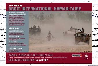 Amis étudiants et praticiens du Droit ou encore membres d'ONG vous souhaitez cette année bronzer utile ? Alors inscrivez-vous au 25ème cours de Droit international humanitaire organisé par le CICR et la Croix-Rouge Suisse à Zäziwil du 2 au 11 juillet 2012.