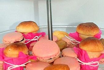 Et voilà les mignardises servies pour l'anniversaire de mon mari...je voulais un buffet printanier en rose et vert, alors j'ai réalisé des macarons à la fraise...accompagnés d'autres douceurs dont les recettes viendront...