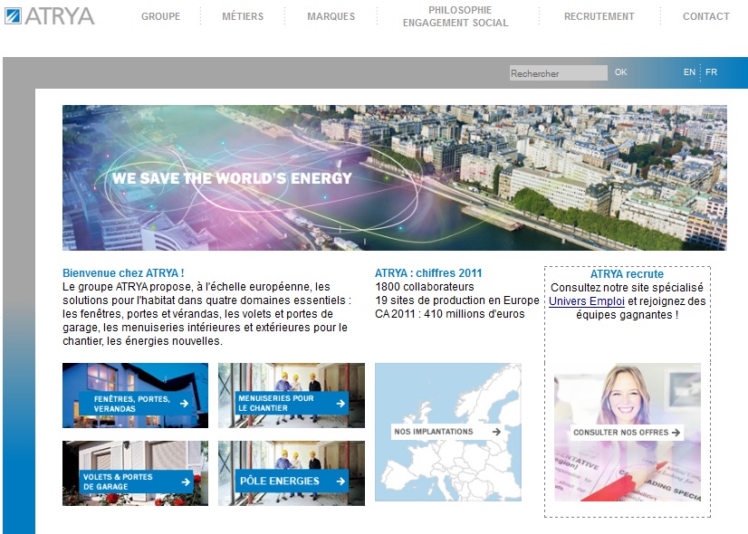 A propos du groupe ATRYA"Créé par Johannes TRYBA - maître menuisier - le groupe ATRYA propose à l'échelle européenne des solutions pour l'habitat dans les domaines de la menuiserie extérieure, la fermeture, l'agencement et la nmenuiserie intérieure de chantier, et les énergies nouvelles.30 ans de croissance continue ont permis au groupe ATRYA d'être aujourd'hui un acteur majeur sur le marché des solutions pour l'habitat. Avec un chiffre d'affaires de plus de 410 millions d'euros et plus de 1800 collaborateurs répartis sur 19 sites de production, ATRYA reste malgré tout un groupe familial.Néanmoins, ATRYA, c'est avant tout une histoire de femmes et d'hommes engagés au quotidien pour la défense de l'Esprit ATRYA et le respect de l'environnement pour le bien-être des générations futures."