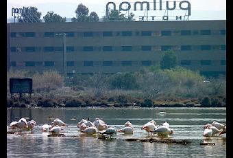 Observer les flamands lorsque ceux-ci sont de retour en nombre dans la région est toujours un véritable plaisir. Plaisir décuplé lorsque ces gracieux volatiles évoluent dans un milieu qui à l'origine devrait plutôt leur être hostile. C'est le cas de l'étang de Berre, ou plus précisément des anciens salins qui le bordent. Cette troupe de flamands roses vaque à ses occupations, complètement indifférente au brouhaha de la zone urbaine environnante. Un coin de nature coincé entre un aéroport international, une voie rapide, un complexe hôtelier mais aussi commercial et des habitations. Ceci est encore une preuve que les animaux ont une faculté d'adaptation qui ne peux que nous inciter au respect.