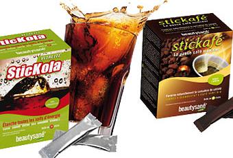> Le « Stickafé », un complément alimentaire aux extraits de plantes, riches en fibres, lancé par Beautysané, à consommer en boisson chaude, idéal à la pause café. À base de café vert non torréfié, réputé diminuer l’absorption des sucres dans le système digestif et accélérer le métabolisme des graisses, il comprend également de l’inuline de chicorée, une fibre soluble naturelle favorisant le confort intestinal et contribuant à l’équilibre du système digestif, ainsi que du Slendesta, un extrait de protéines de pomme de terre atténuant la sensation de faim et le désir de manger (à consommer 60 minutes avant de passer à table). Ne pas consommer plus d’un stick par jour (36 € la boîte de 30 sticks).