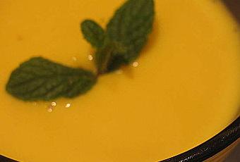 Pour la crème anglaise, il vous faut : 25 cl de lait, 3 jaunes d'oeufs, 50 gr de sucre, menthe fraîche (une dizaine de feuilles).