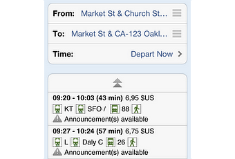 Pas grand chose à redire de cette application. Regrettons peut être juste qu'elle n'informe que sur les transports en commun, alors que le 511 intègre le trafic routier et les vélos. Et l'ergonomie reste perfectible. Par exemple, il n'y a pas de "sablier" pendant certains temps d'attente qui pourtant peuvent être de 10s, et qui peuvent faire penser que l'application est plantée.