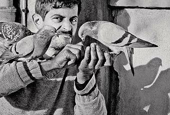 - Un homme nourrissant les pigeons pas très loin de la place du Tertre, Montmartre, Paris.