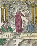 Déjà au XVIème siècle, on se demandait s'il fallait effectuer les calculs par écrit ou avec une machine. C'est ce que nous montre Gregor Reisch dans "Margarita Philosophica" : la belle Arithmétique compare l'algoriste (Boethius qui fait un calcul par écrit) et l'abaciste (Pythagore qui fait un calcul en utilisant un abaque)...