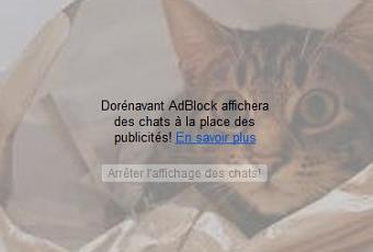 Pour ceux qui pensaient que AdBlock pouvait dénaturer un site en enlevant purement et simplement les publicités de ce dernier, la fameuse extension vient d’annoncer que dorénavant, elle remplacera ces pubs par des chats ! Cela devrait donner un côté ludique à l’ensemble des sites web…
