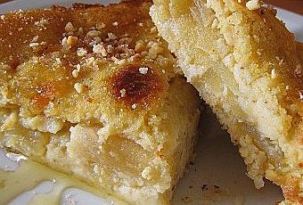 - Peler la pomme et la couper en très fines lamelles que vous superposez dans un moule carré de petite taille (côté à 12 cm) préalablement beurré.