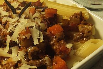 J'ai récemment gouté à une sauce à spaghetti maison que j'ai trouvé bien trop fade et ordinaire. Je me suis alors remémoré cette recette que j'ai testée il y a déjà quelques semaines, que j'ai bien apprécié et qui n'attendait qu'à être publiée... Cette recette, dénichée sur un site inspiré de la cuisine italienne se rapproche de l'authentique ragù di agnello, une sauce italienne alliant agneau et romarin qui change des sauces traditionnelles au boeuf. Certaines versions emploient du vin blanc à la place du vin rouge et de l'épaule d'agneau détaillée en petits morceaux à la place de l'agneau haché.