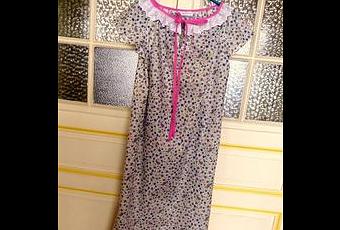 Parfois, je me demande si, dans une autre vie, je ne pourrai pas devenir créatrice de vêtements pour petites-filles. C'est tellement agréable de concocter des variantes autour d'un patron de base. Ici, c'est toujours et encore le modèle "Marie" de Citronille, avec l'ouverture en goutte d'eau devant, un volant en droit-fil de broderie anglaise et un biais rose, se prolongeant par un grand noeud. Le dos comporte moins de fronces pour le pas gêner le sommeil.