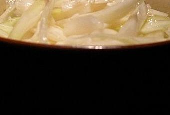 Mettre les lanières de chou dans un gras bol d’eau froide additionnée de gros sel. Laisser tremper au moins 30 min.