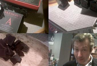 Un récent vendredi en fin de journée, je me suis en effet rendue à une dégustation de chocolats Akesson's organisée par l'épicerie Lion, un de ses quelques distributeurs parisiens. Le créateur de ces produits était là pour nous faire découvrir ses différents délices et ce fut un moment rare. A la fois car il est plus souvent aux quatre coins de la planète cacao qu'à Paris et par sa disponibilité, sa franchise et sa passion qu'il était content de partager.