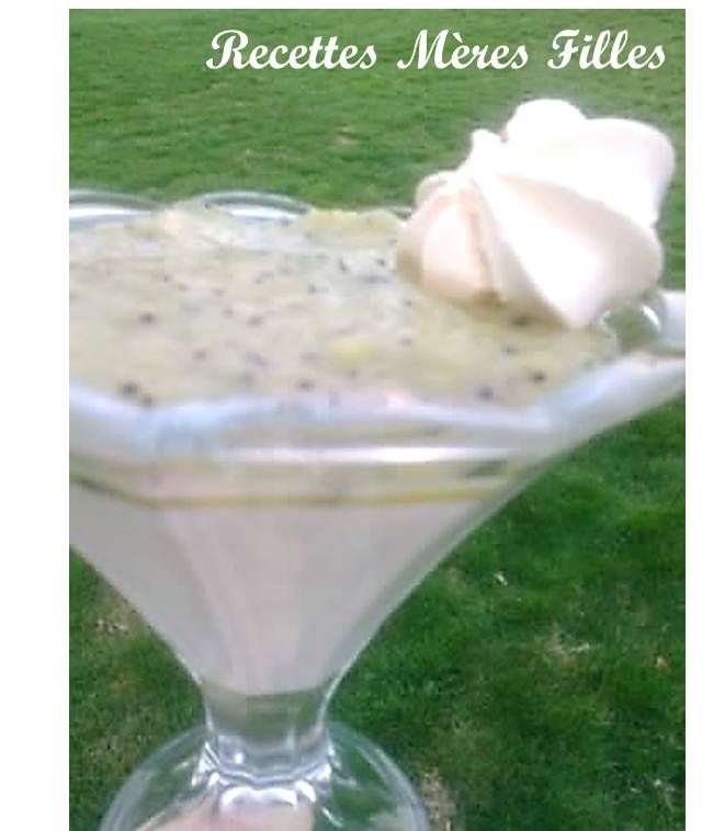 Pour le coulis de kiwis, il suffit de couper les fruits en morceaux, d'ajouter 50 gr de sucre et une cuillère d'eau et le jus de citron dans un poêlon et de faire cuire le tout 5 minutes avant de le mixer.