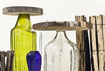 Le bois, par son sacrifice, vient tel un moule, donner une forme « unique » et particulière au verre soufflé. Une inspiration et retour au source du soufflage de verre où les moules auparavant utilisés étaient en bois.