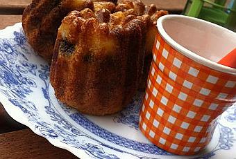 La recette est une base de cake, j'ai juste mis la pâte dans des moules à canelé, la forme est plus simple pour les petits et facile à manger.