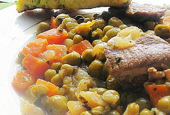 9. Servir les petits pois accompagnés de farcis.