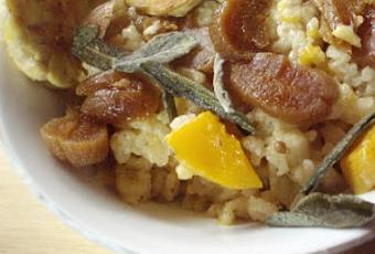 Alors cette fois-ci ce fut une base différente: du riz arborio avec de la courge butternut mais sans sauge... avec de la vanille! Le résultat n'est pas sucré mais manque de tonus. Ce fut l'occasion de le reprendre pour un autre repas d'une manière plus corsée.