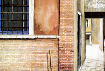 Les briques semblent plus marquées par le temps, mais le pinceau a peut-être corrigé un peu leur déchéance, le palina a changé de rive ou peut-être pas, sa couleur est modeste sur la toile et elle est d'un vert émeraude magnifique aujourd'hui.... Même la lumière, un peu triste des instants saisis, se renouvelle, alors que les saisons sont différentes, l'hiver et presque l'été !