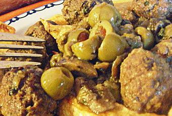 Un bon Tajine à la viande hachée et olives vertes pour les addicts comme moi des olives !Cette recette me vient de ma chere Matina du blog Horizon culinaire. J'ai juste ajouté des champignons frais mais cela reste facultatif !!