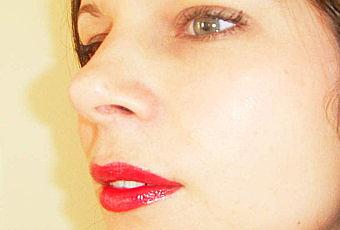 D'abord la texture assez indescriptible : c'est mouillé mais pas glissant. Le terme vernis est peut être effectivement le plus approprié, mais niveau sensation imaginez un vernis sur vos lèvres!! Ouais. Voilà! Moi perso, le rouge qui ne glisse pas, même pas un peu, ça me gène.