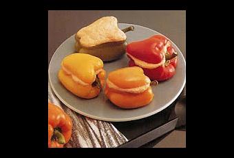 - Dans un saladier, battre les œufs avec le cumin, l'harissa et une pincée de sel. Répartir à l'intérieur des poivrons. Poser les couvercles. caler les poivrons les uns contre les autres dans une cocotte, afin que le contenu ne se renverse pas.