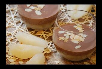 Versez la crème au chocolat dans les ramequins, sur la gelée de poire. Placez au frais pendant plusieurs heures.