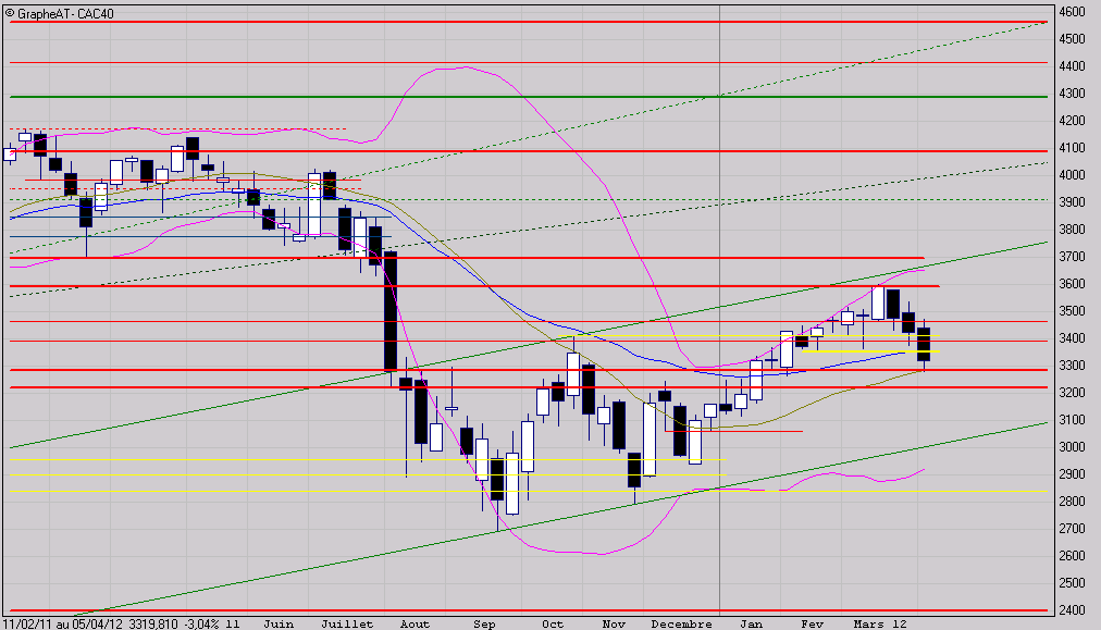 Il ne faut cependant pas négliger les signes de dégradation de la psychologie de notre marché impacté par les nouvelles craintes sur la zone Euro avec l'Espagne qui pourraient être à l'origine d'une rechute plus profonde, capable de développer un épisode baissier sous les 3220 points en direction des 3060 points.