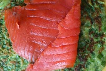 Chauffez une poêle, huilez, et confectionnez de petites crêpes. Servez accompagné de saumon.