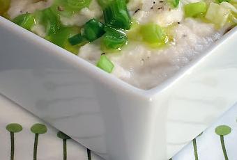 Servir dans un contenant moyen et ajouter sur le dessus l'échalote longue émincée finement et un filet d'huile d'olive.