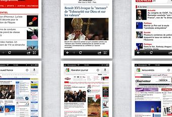 Tout commence par là : offrir aux internautes une version optimisée de son site, facilitant la lecture sur un écran de smartphone, semble être un minimum. Elle permet en particulier une affichage plus clair et une navigation plus aisée pour les mobinautes. À ma grande surprise, l’ensemble des sites médias français ne sont pas encore optimisé « mobile », comme l’illustre les quelques exemples ci-dessous, qui comprend des sites optimisés [rangée du haut] et des sites non optimisés [rangée du bas].