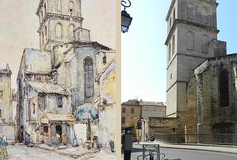 Louis-Agricol Montagné (1879-1960) "Chevet de l'église St-Agricol" aquarelle