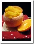 Pour améliorer l'aspect, à l'aide d'une cuillère, prélevez dans le bac de la glace et posez-la délicatement sur le dessus de l'orange.
