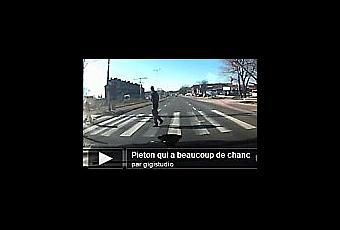 le feu passe au vert pour ce piéton, il traverse tranquillement c'est alors qu'une voiture déboule à toute allure brûlant le feu rouge,