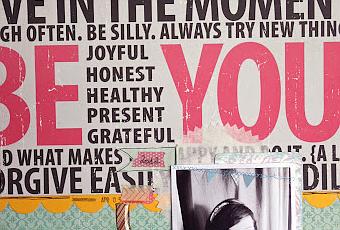 Mais il a bien fallu me résoudre à le couper en deux car mes photos ne ressortais absolument pas sur ce fond chargé. Je voulais garder aussi l'impact des mots alors pas question de patouiller dessus...