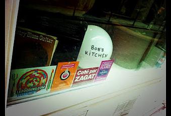 Bob's kitchen, c'est une petite pépite d'adresse que je partage avec vous aujourd'hui.A deux pas du boulot de mister Garlic, rue des Gravilliers (la rue du Andy Wahloo, du 404 et du Derrière entre autres), vous pourriez passer devant cette petite cantine à la déco minimaliste sans la remarquer...big mistake ! C'est un spot veggie-healthy où on mange bien, bon, sain et pas cher, ce qui dans le quartier relève du miracle.La "carte" affichée au mur change tous les jours, et vous avez le choix entre un bagel, un vegetarian stew, une soupe, un futomaki, différents jus fraichement blendés, 2/3 salades, et des douceurs new-yorkaises en dessert (gros coup de ♥ pour le cookie avoine-raisin-noix). L'accueil est friendly, l'ambiance cool, on mange autour de grandes tables, coincé entre un mannequin et deux geeks, et on est repu pour 10-12 euros.En + // Thé à siroter à volonté et magazines à feuilleter à disposition.Ah oui, et quand vous êtes là-bas, faites comme moi, parlez moitié français, moitié anglais, that's the way it goes :)Re-ah oui, il y a aussi une adresse dans le 10e: 15 rue Lucien Sampaix, où je ne suis jamais allée, mais ça doit être aussi bien !A faire ++++