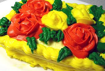 Malheureusement les roses se sont affaissées légèrement sur le gâteau à cause de la température un peu trop élevée dans ma cuisine.