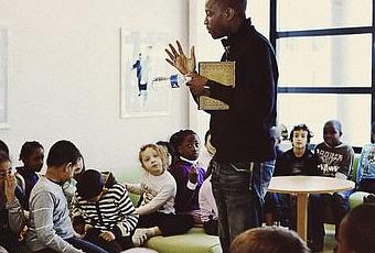 Abd Al Malik rencontre des élèves de CP, après la répétition de l’après-midi à Alfortville (Val-de-Marne). – | / Roberta Valerio for M le magazi