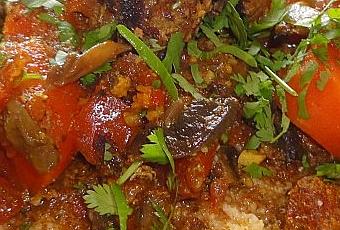 Préparez la semoule et dans l'assiette mettre la semoule et la garniture de la tajine avec son jus et parsemez de coriandre ciselée