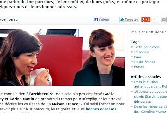 Elles sont architectes, mamans, et elles réorganisent l’intérieur de particuliers tous les samedi matins dans l’émission La Maison France 5. J’ai rencontré Gaëlle Cuisy et Karine Martin, deux femmes qui vivent à cent à l’heure. Autour d’un café, elles ont pris le temps de me parler de leur parcours, de leur métier, de leurs goûts, et même de partager quelques-unes de leurs bonnes adresses.
