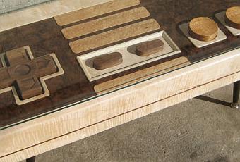 Nous avons déjà vu des tables reprenant la forme de manette de console, comme les paddle de la NES, mais ici, il faut saluer le travail minutieux de bohoworkbench.com.