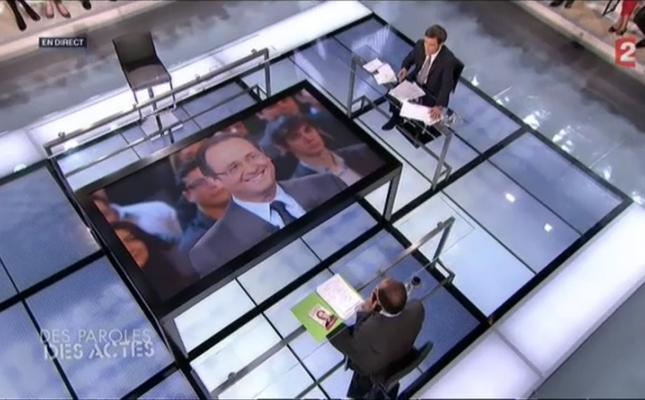 Le 11 avril, François Hollande était l'invité de "Des paroles et des actes" sur France 2. Pendant plus de 20 minutes, il a été interrogé sur des sujets multiples : le droit de vote des étrangers, les mesures qu'il mettrait en place la première année, le redressement des comptes de la France, ou sa position sur le conflit au Mali. Le script de son intervention est ICI.