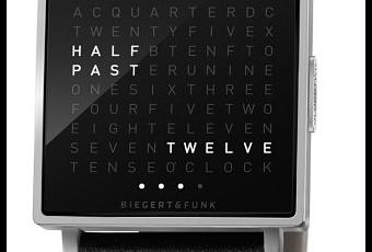 S’inspirant de l’horloge murale QlockTwo vendue 1.100$ aux US, ce nouveau modèle à porter autour du poignet (à l’aide d’un bracelet en caoutchouc naturel) devrait coûter entre 500 et 600 €.