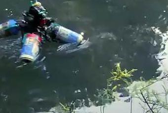 Omniboat est un robot radio-commandé basé sur une structure en LEGO montée sur quatre flotteurs qui ne sont autres que d’anciennes cannettes de soda recyclées.