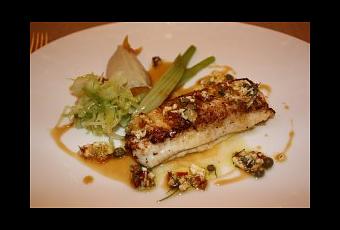 « La Sole de petit bateau, les filets tartinés de limequat confit, déclinaison de fenouil, condiment méditerranéen. »