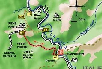 C'est un village en nid d'aigle situé à 613m d'altitude, à la cime d'un éperon rocheux, avec vue plongeante sur les méandres de la Roya. Il est juste à la limite de la frontière italienne. Il fut italien jusqu'à la fin de la guerre de 1939-1945. Il est devenu français par décision d'annexion signée par le Général De Gaulle en 1945 puis par un référendum auprès des habitants en 1947. Actuellement, il est rattaché à la commune de Breil-sur-Roya.