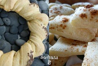 1 couronne & 25 mouillettes500gr de semoule de blé fine40gr de farine1 sachet de levure de boulanger4 cl de lait25cl d'eau1 c. à c. de sucre1 c. à c. de selMélanger les ingrédients dans le bol du robot.Pétrir 5 minutes.Laisser reposer la pâte 1h30 à couvert.Quand elle a doublé de volume, dégazer et façonner.