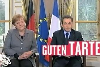 En allemand Guten Tag (qui peut se prononcer Guten Tar) veut dire Bonjour. Admirez la gêne de Dame Merkel. Das ist klar : Sarkozy a aussi des problèmes d'audition.
